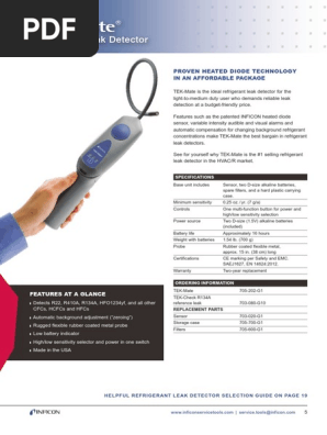 Related : Inficon 705 202 G1 Tek Mate Refrigerant Leak Detector - This device helps you detect and locate refrigerant leaks quickly and accurately..