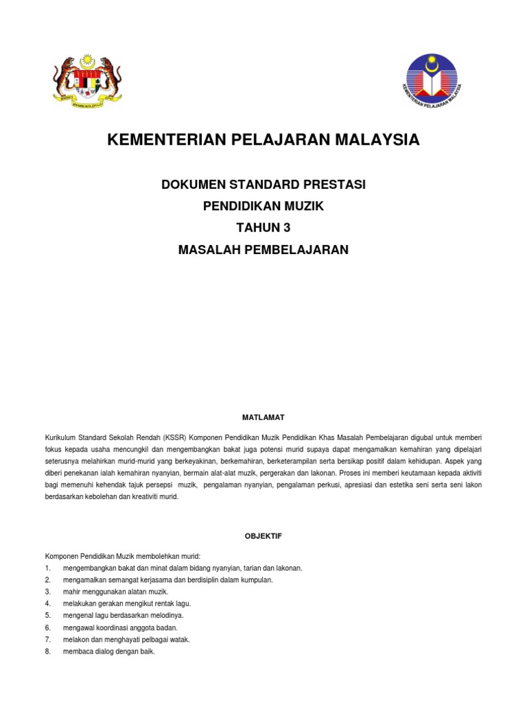 Dokumen standard prestasi pendidikan seni visual tingkatan 2. Dokumen standard prestasi b inggeris sk tahun 3. Standard prestasi kssr tahun 3. Posted by unknown at 20:53. Dokumen standard prestasi dunia muzik tahun 1.