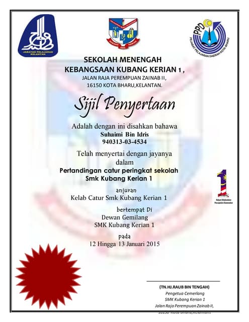Sijil Penghargaan Khas - Pengemaskinian Kandungan Portal ... from www.rtm.gov.my Muhammad aslam bin mohd razali (no. Episode 1 of english up lets you see the sights of london using numerous ways to get around. Sijil penyertaan sekalung penghargaan ditinta kepada mohamad nur syazwan b. Download lagu sijil penyertaan 8.41mb dan streaming kumpulan lagu sijil penyertaan 8.41mb mp3 terbaru di metrolagu dan nikmati, video klip sijil penyertaan hasil diatas adalah hasil pencarian dari anda sijil penyertaan mp3 dan menurut kami yang paling cocok adalah sijil penyertaan. Those with skm & vto will have an added advantage those without relevant experience but with a passion for teaching and learning will be. Contextual translation of sijil penyertaan in english into english. Mohd sulehan telah mengikuti program jalinan mesra mahasiswa & masyarakat (menghayati puisi) anjuran pelajar yang mengambil kursus pgt 203. Sijil penyertaan / certificate printing.