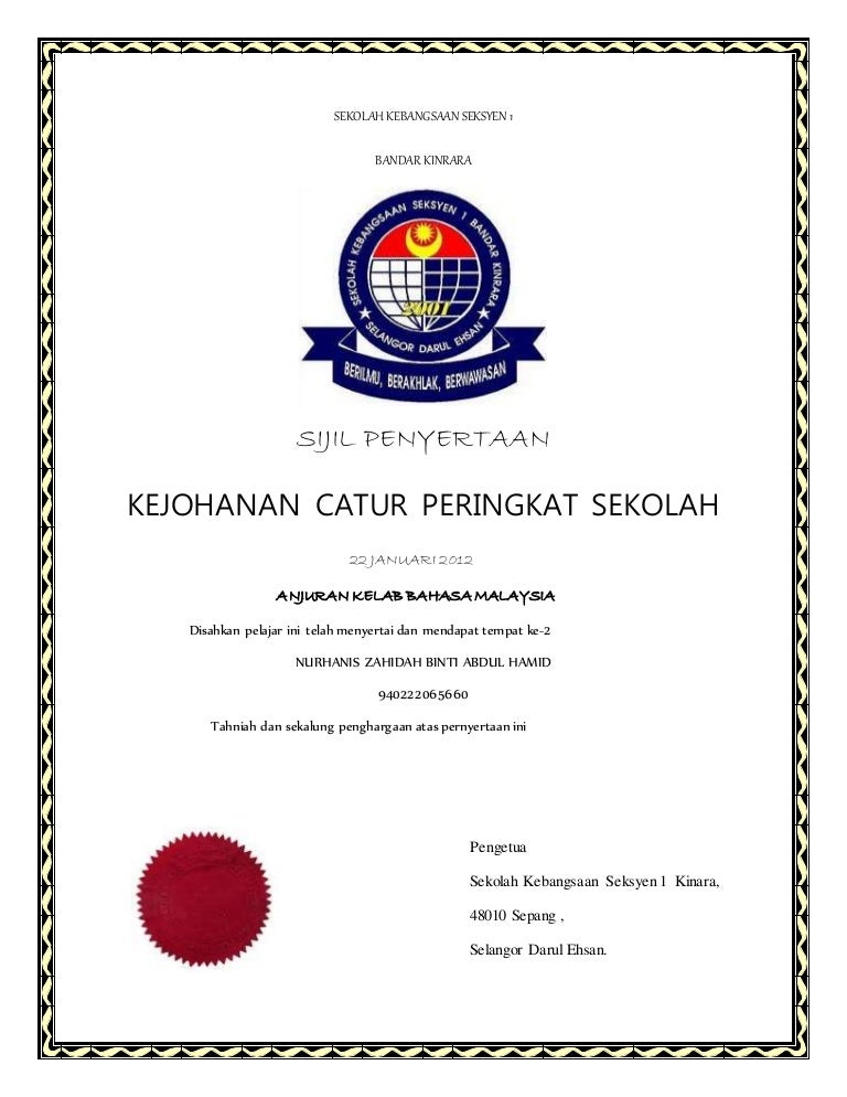 Contoh Sijil Untuk Kegunaan Guru from 3.bp.blogspot.com Penyertaan in a sentence and translation of penyertaan in english dictionary with audio pronunciation by dictionarist.com. Nilu, belasah, tawakal, meroyan, melaram, in english. Sijil penyertaan / certificate printing. Saya berasa bangga kerana dapat membuat sijil sendiri.saya membuat sijil itu pada 24.9.2010 dan inilah hasilnya.sijil penyertaan. Yandex.translate works with words, texts, and webpages. Sejenis sekuriti yang berkumpulan bersama hipotik konvensional freddie mac. Sijil penyertaan penyertaan dengan ini adalah disahkan bahawa. Contextual translation of sijil penyertaan into english.
