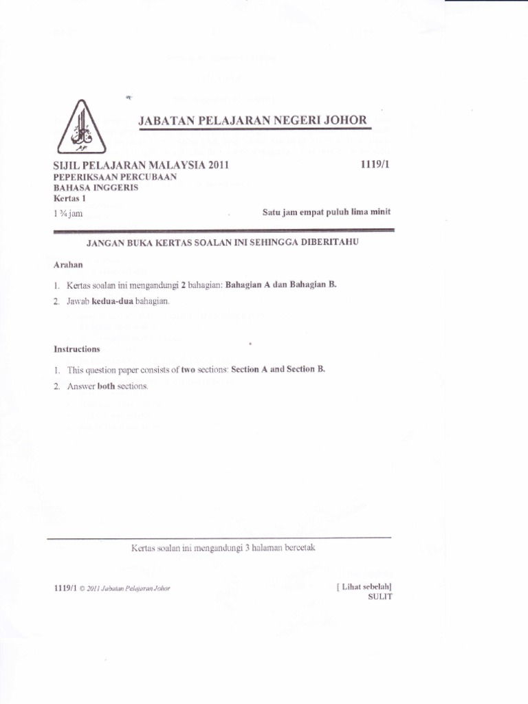 Related : Spm English Paper 1 2018 : 1111/01 for examination from 2018..