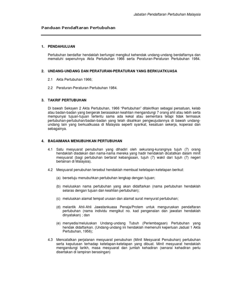 Borang Pendaftaran Pertubuhan Baru / Borang Pendaftaran Pertubuhan / Senarai semak dokumen permohonan pendaftaran majikan dan pekerja;. Minit mesyuarat agong terbaru pertubuhan. 2 3 pemohon perlu membuat salinan borang yang telah dilengkapkan untuk tujuan berikut jika perlu: Pengenalan diri majikan (yang tidak berdaftar dengan ssm dan agensi lain); For more information and source, see on this link : Borang 3 diisi lengkap (termasuk tarikh, tandatangan dan cop rasmi pertubuhan perbadanan) 3.